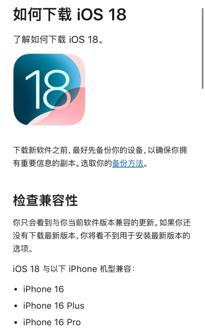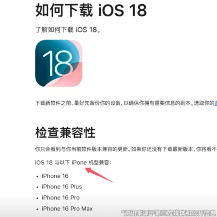 苹果中国官网的“如何下载iOS 18”支持页面中出现错别字,在介绍机型兼容的部分,苹果将“iPhone”写成了“iPone”。